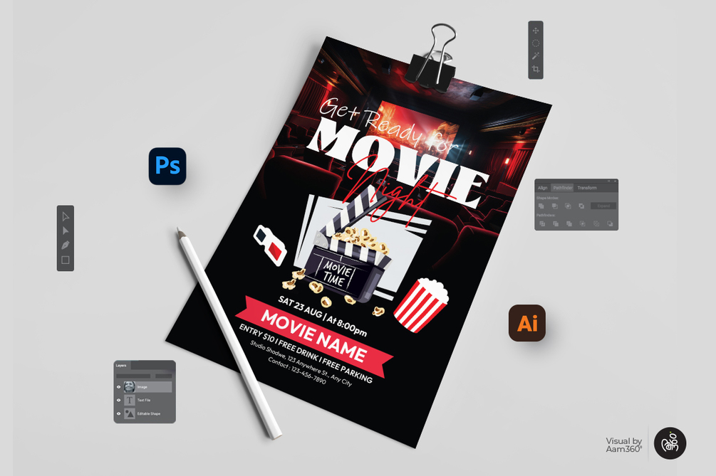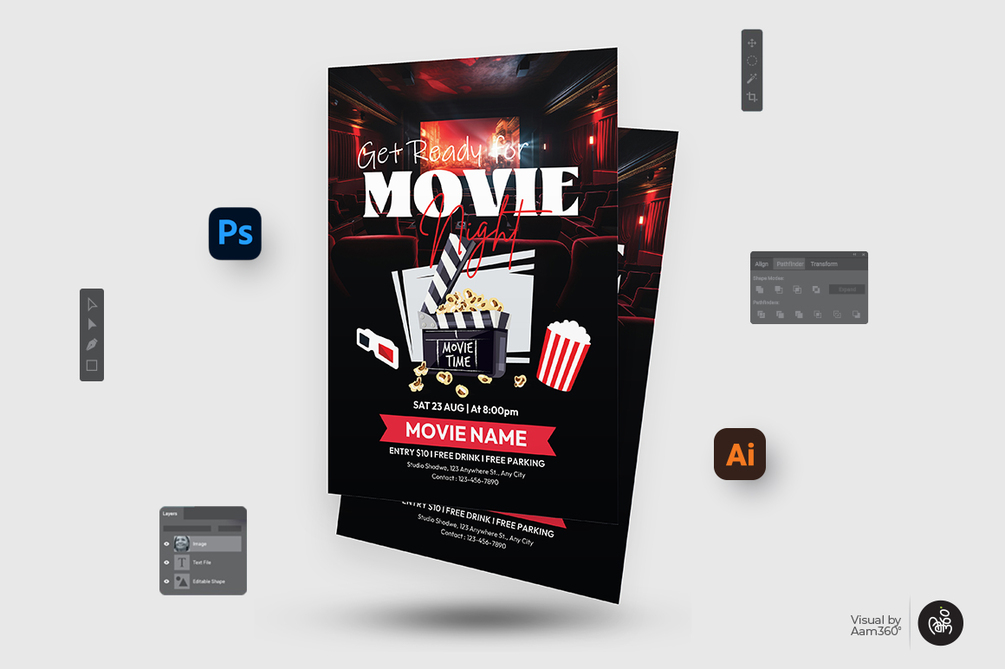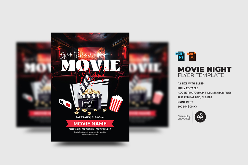 This is a Movie Night Flyer Template, movie time, movie fest, it's movie time, show time, theater, Professional Service or any other purpose.
